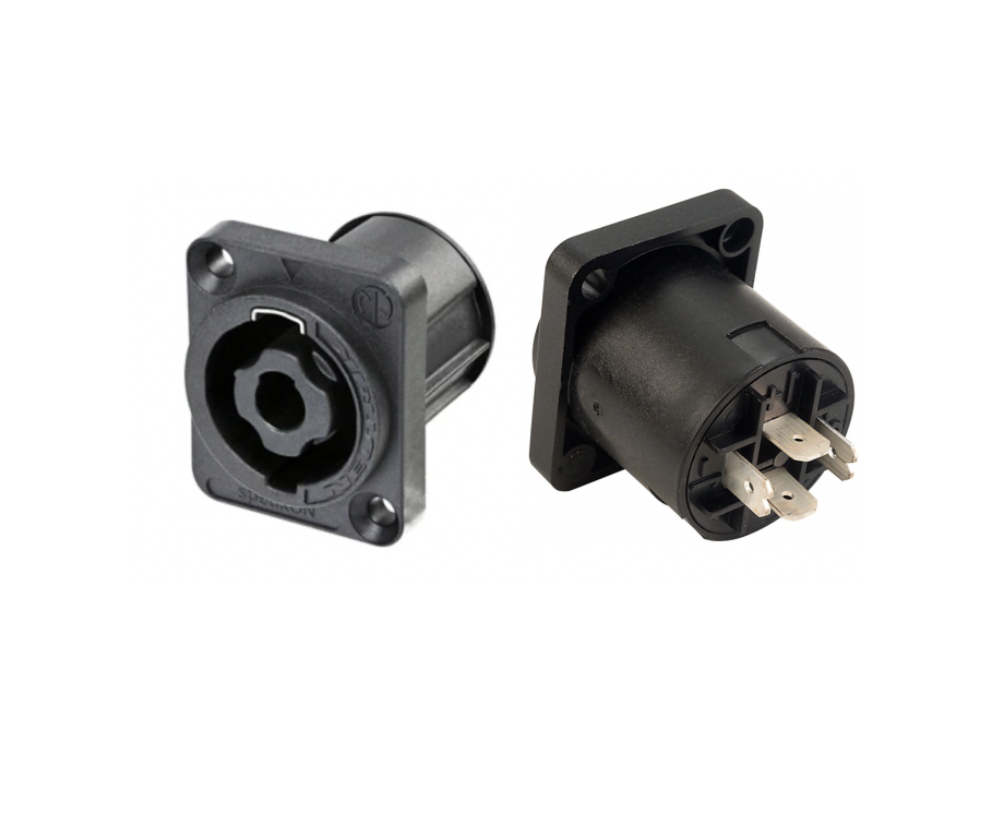 CONNECTRIX Connector 3/16” flat tabs Universal D-size, Black Plastic with Countersunk Thru Holes Neutrik # NL4MPXX