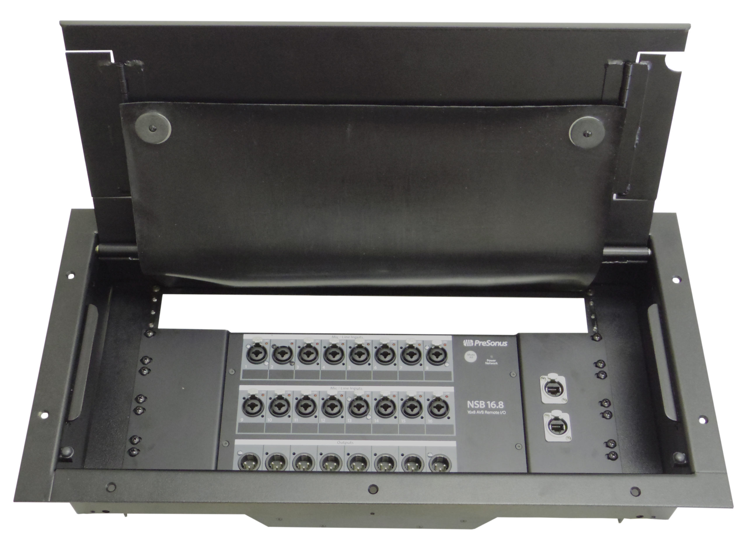 The NEW RackWell Stage Pocket supports design integration of rack-mountable digital snakes in the stage floor, where they can be easily accessed and used. On-stage connectivity is protected under the RackWell lid, while cables egress neatly through hinged cable exits onto the stage floor.