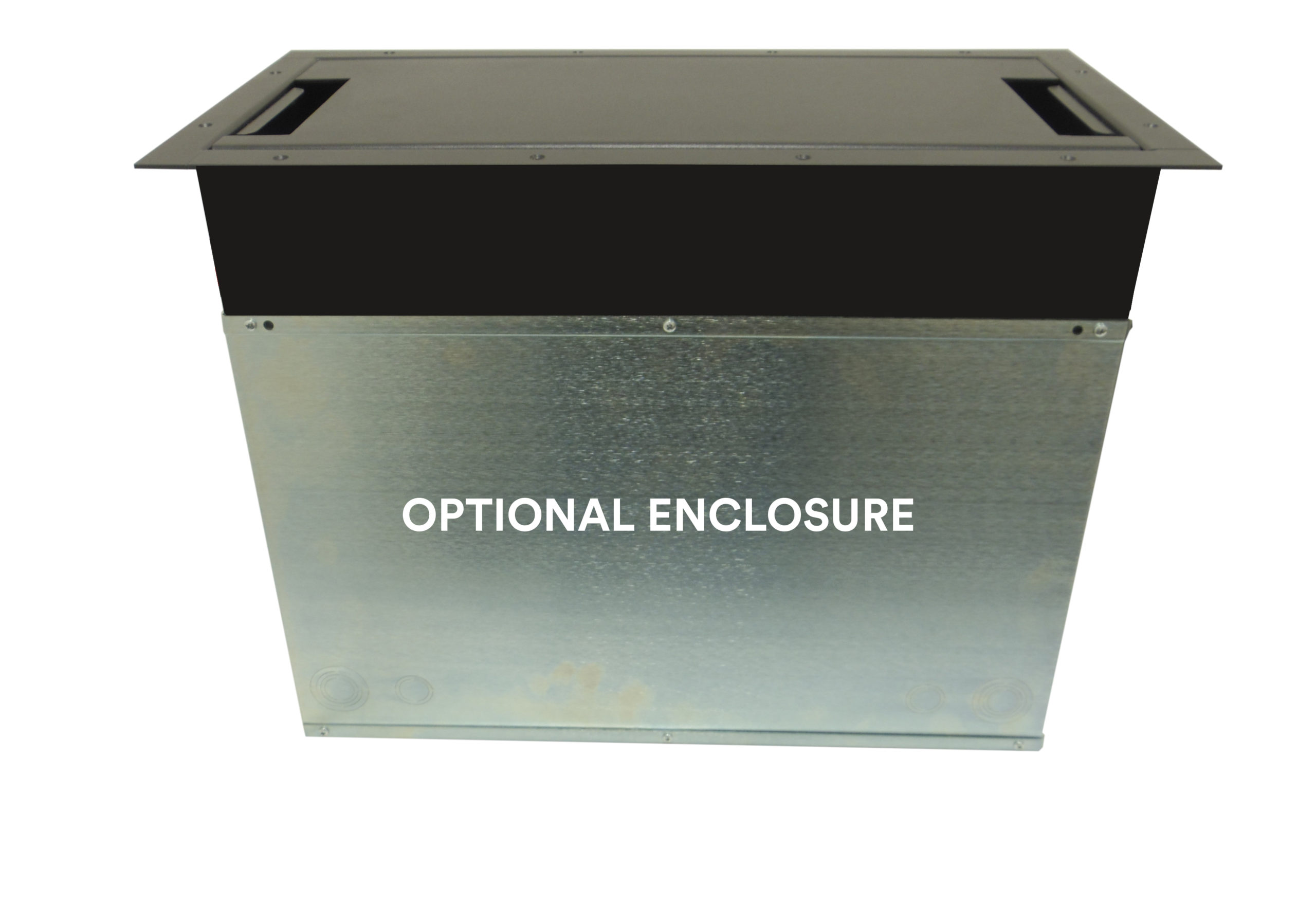 The RackWell Stage Pocket allows a variety of digital rack mounted products to be installed vertically in the stage floor, regardless of the product depth. Completely open under the rack rail for ventilation and flexibility of depth, an optional enclosure kit can encapsulate the under-floor portion if needed. Total capacity is 5ru.