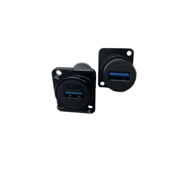 CONNECTRIX Connector 3.0 USB Feed Thru Type A to A Universal D-size, Black Metal Housing Amphenol# ACUSB3-AAB